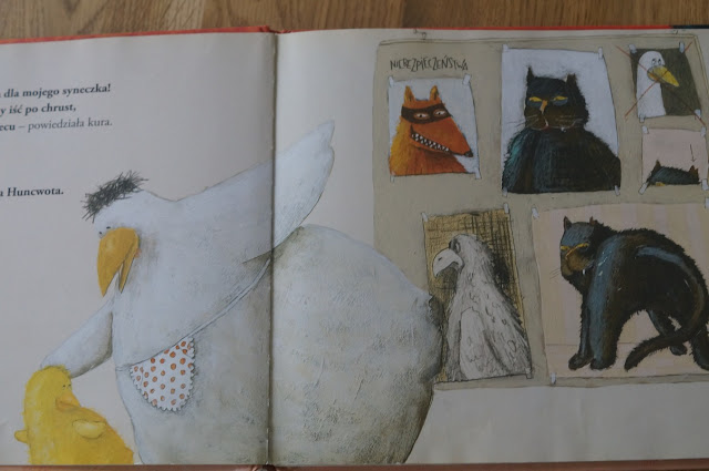 kurczaczek i groźny kot, który chce go zjeść. Wszystko oczywiście kończy się